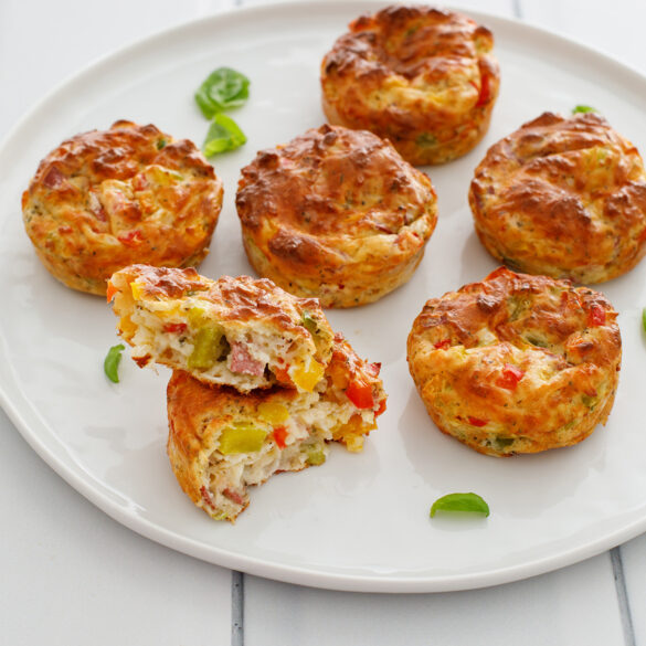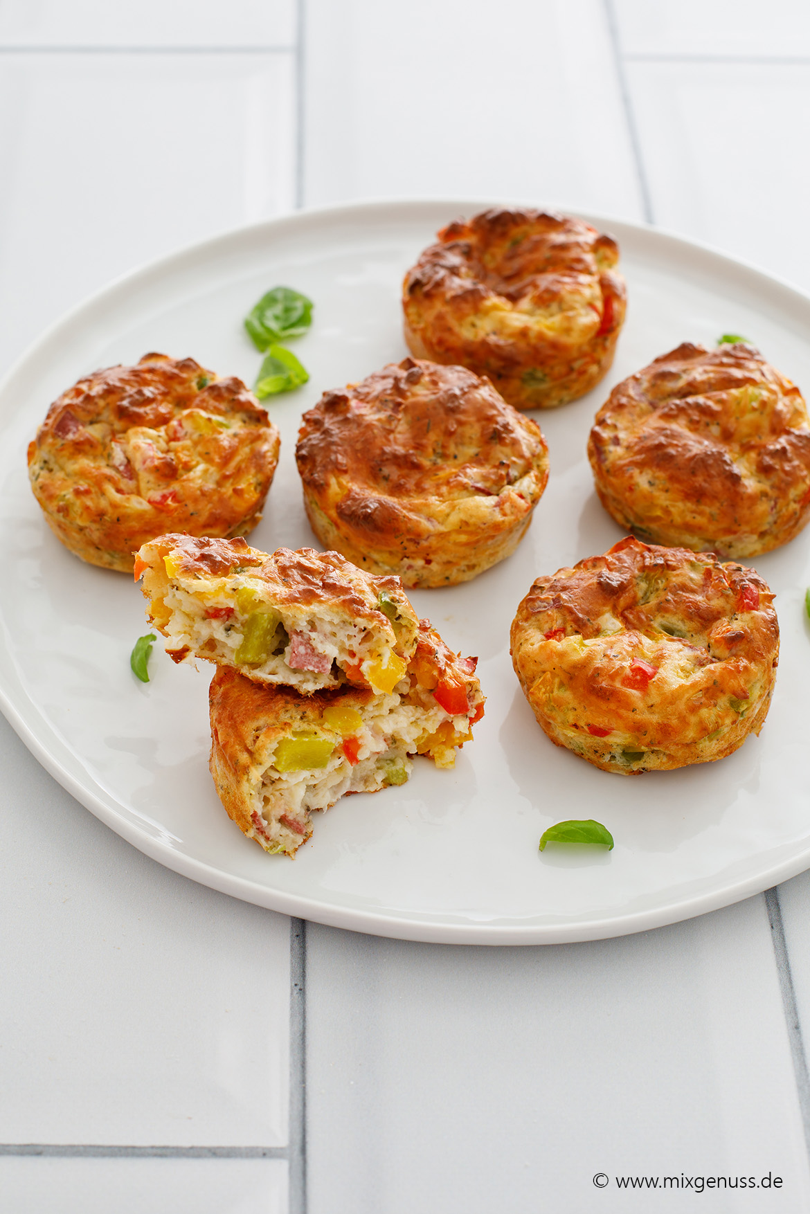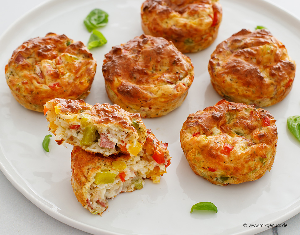 Proteinreiche Snack-Muffins mit Quark, Käse und Salami